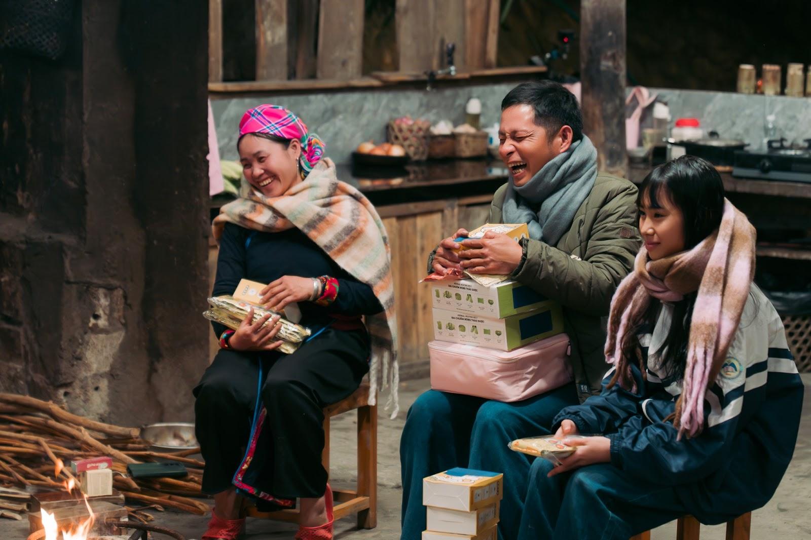 Đêm lạnh bên bếp lửa trở nên ấm áp hơn với màn trao quà đầy ắp tiếng cười. Từng món quà được các thành viên gói ghém trọn yêu thương. Đó là chiếc bếp gas mini màu “hường” đặc trưng được trao gửi cho gia đình chị Thông, từng cuốn sách tiếng Anh, bộ đồ chơi cho bé Thư và bé Thắng hay những món đồ giữ ấm thiết thực. Mỗi món quà đều là tâm tư của các thành viên dành cho “gia đình” tại Bản Liền.