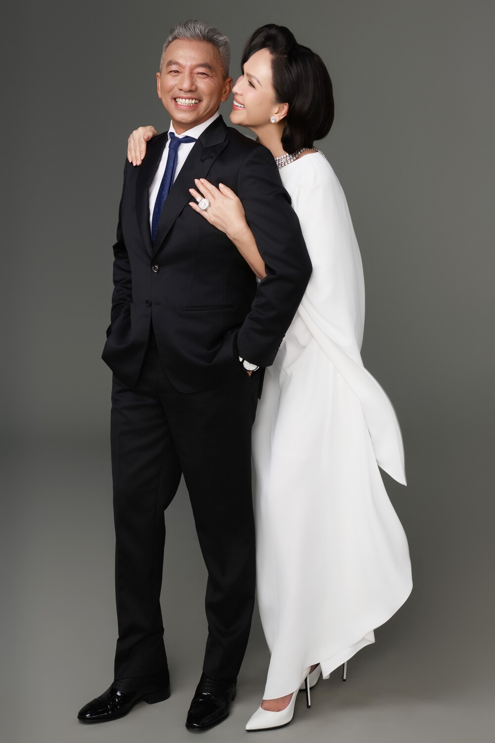 Doanh nhân Hà Tôn Đức diện vest sang trọng, lịch lãm. Diễm My chọn những thiết kế thời thượng của NTK Đỗ Mạnh Cường, phối trang sức đồng điệu. Trong những dịp đặc biệt này, hai vợ chồng nữ diễn viên dành thời gian bên nhau, ôn lại những kỷ niệm. Có năm họ sẽ tổ chức tiệc thân mật, có sự góp mặt của những người thân, bạn bè thân.