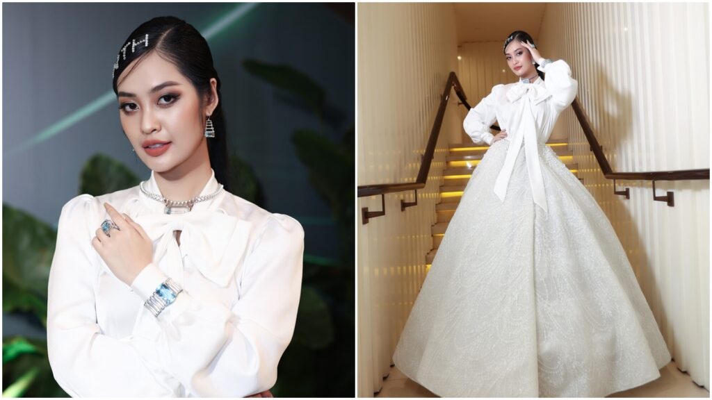 Hoa hậu Nông Thúy Hằng gây chú ý khi đeo trang sức trị giá 5 tỷ đồng, xuất hiện rạng rỡ tại họp báo công bố Miss Earth Vietnam 2023.