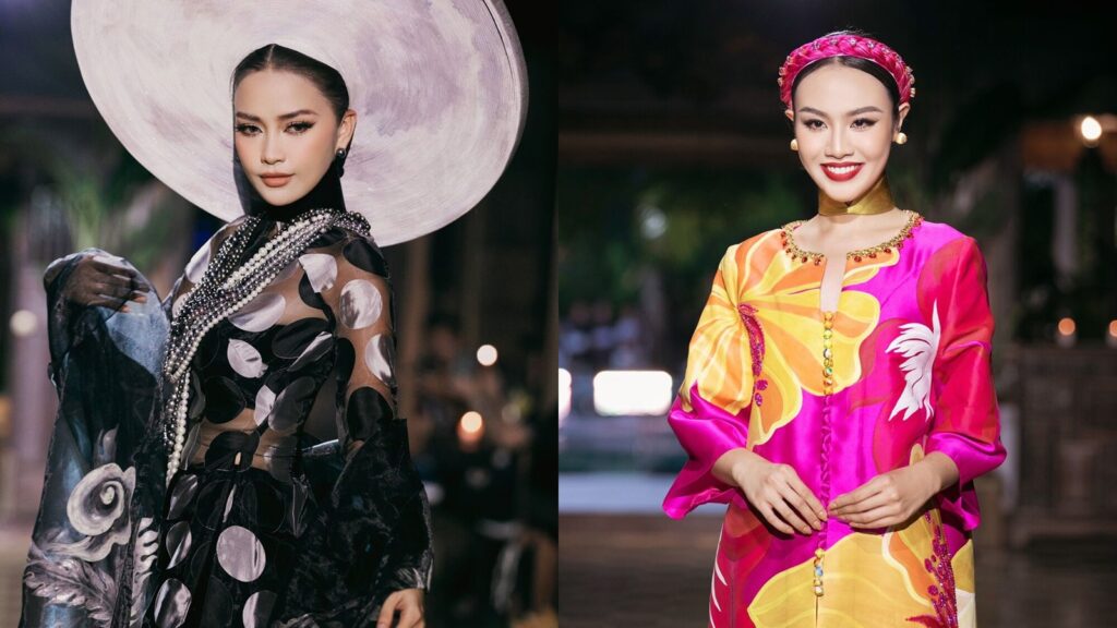 Trình diễn trong show thời trang “Trăng Là…” của NTK Đinh Văn Thơ, Hoa hậu Ngọc Châu cùng Á hậu Thủy Tiên đã chinh phục khán giả bởi những bước catwalk uyển chuyển, thể hiện tinh thần trang phục thiết kế và tôn vinh nét đẹp văn hóa dân tộc.